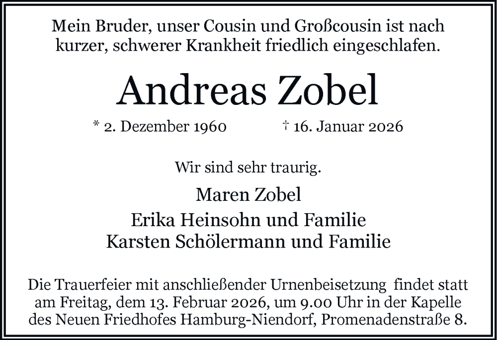 Hier finden Sie alle Traueranzeigen aus der Zeitung, die bisher für Andreas Zobel erschienen sind. Weitere Traueranzeigen, die in der Zeitung erscheinen, werden hier ebenfalls aufgelistet