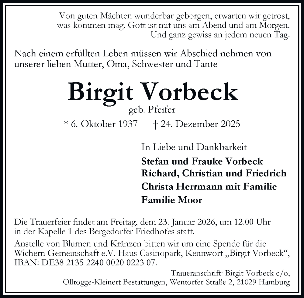 Hier finden Sie alle Traueranzeigen aus der Zeitung, die bisher für Birgit Vorbeck erschienen sind. Weitere Traueranzeigen, die in der Zeitung erscheinen, werden hier ebenfalls aufgelistet