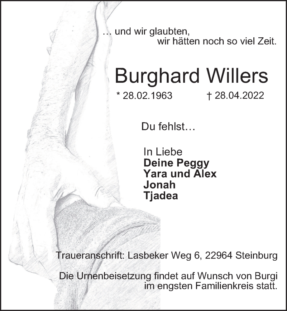 Hier finden Sie alle Traueranzeigen aus der Zeitung, die bisher für Burghard Willers erschienen sind. Weitere Traueranzeigen, die in der Zeitung erscheinen, werden hier ebenfalls aufgelistet