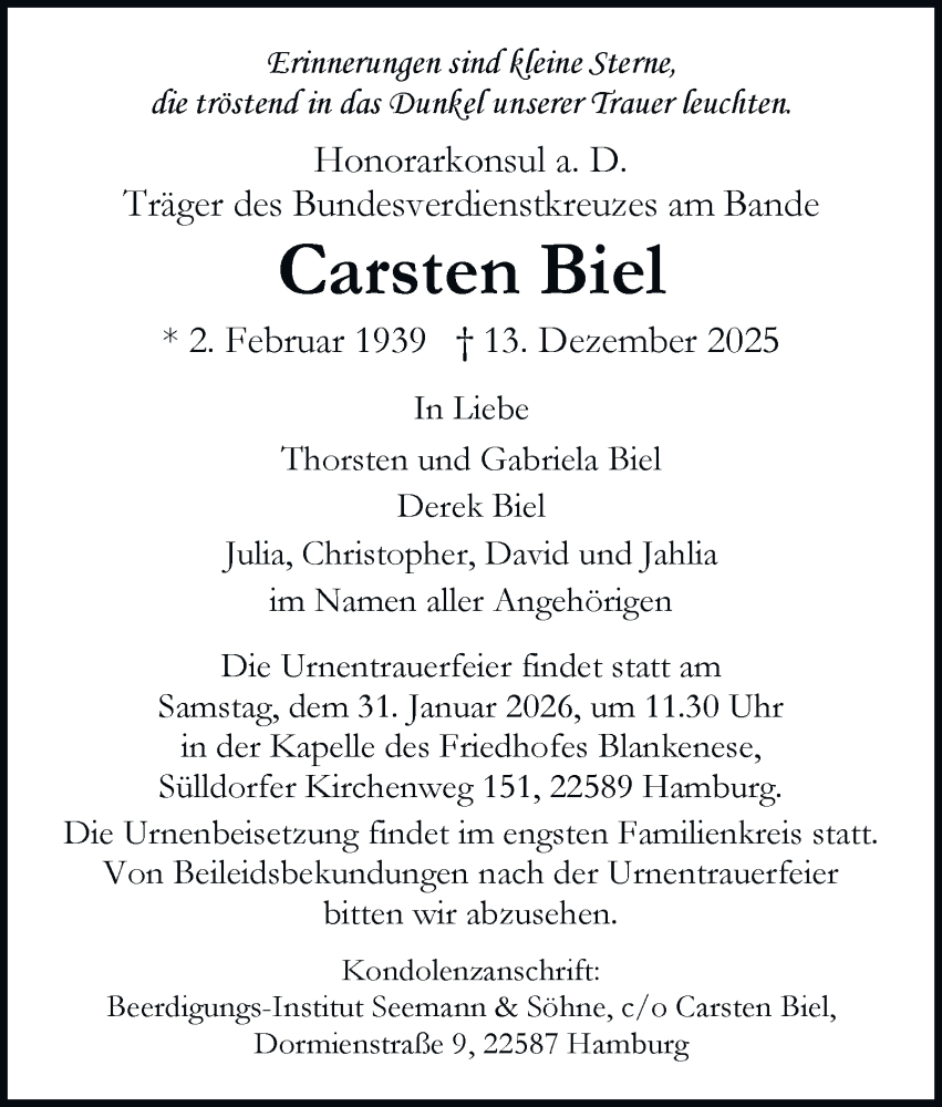Hier finden Sie alle Traueranzeigen aus der Zeitung, die bisher für Carsten Biel erschienen sind. Weitere Traueranzeigen, die in der Zeitung erscheinen, werden hier ebenfalls aufgelistet