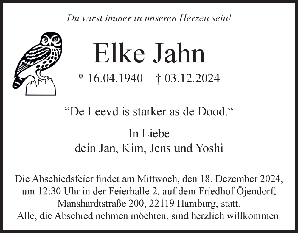 Hier finden Sie alle Traueranzeigen aus der Zeitung, die bisher für Elke Jahn erschienen sind. Weitere Traueranzeigen, die in der Zeitung erscheinen, werden hier ebenfalls aufgelistet