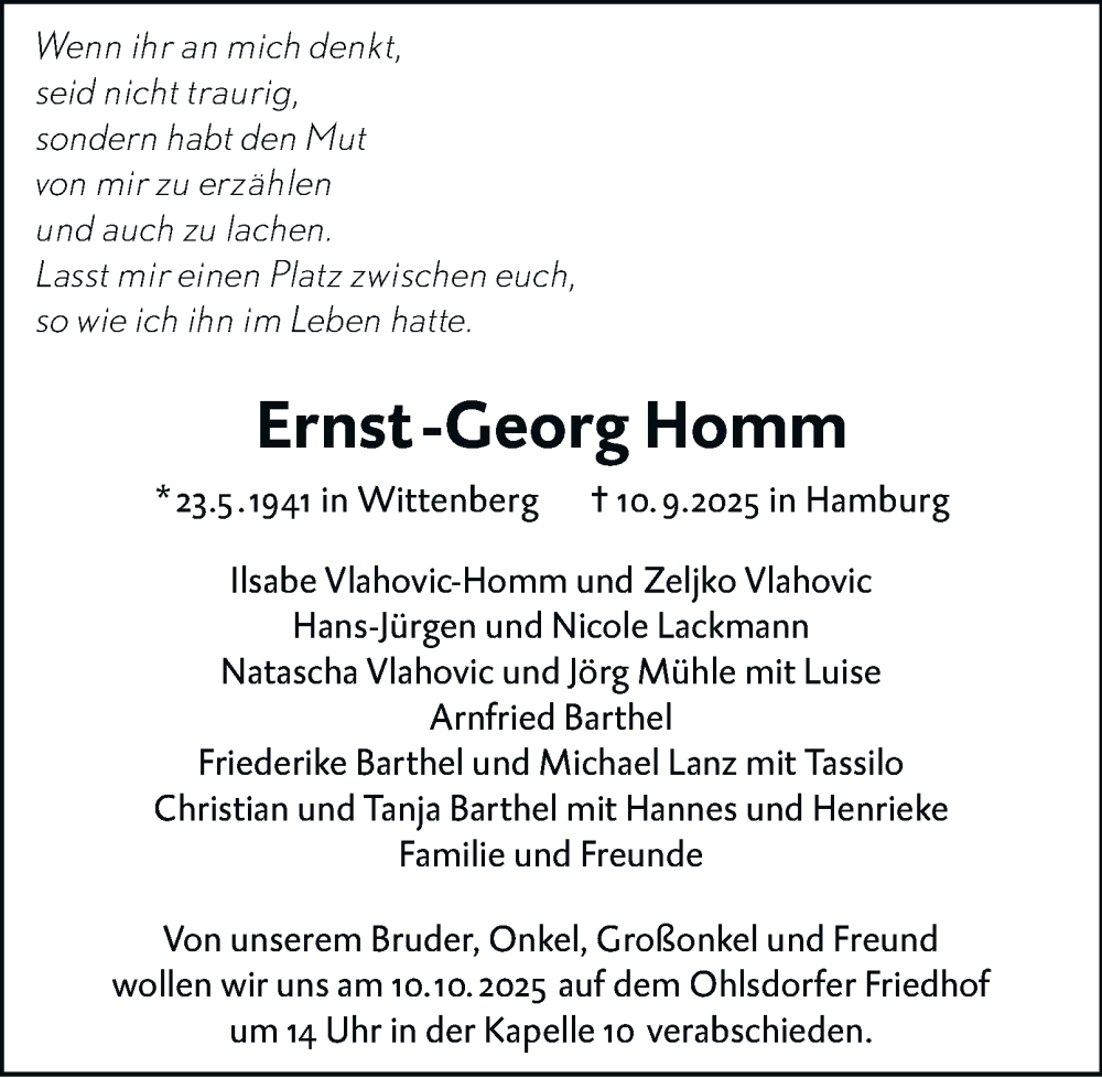 Hier finden Sie alle Traueranzeigen aus der Zeitung, die bisher für Ernst-Georg Homm erschienen sind. Weitere Traueranzeigen, die in der Zeitung erscheinen, werden hier ebenfalls aufgelistet