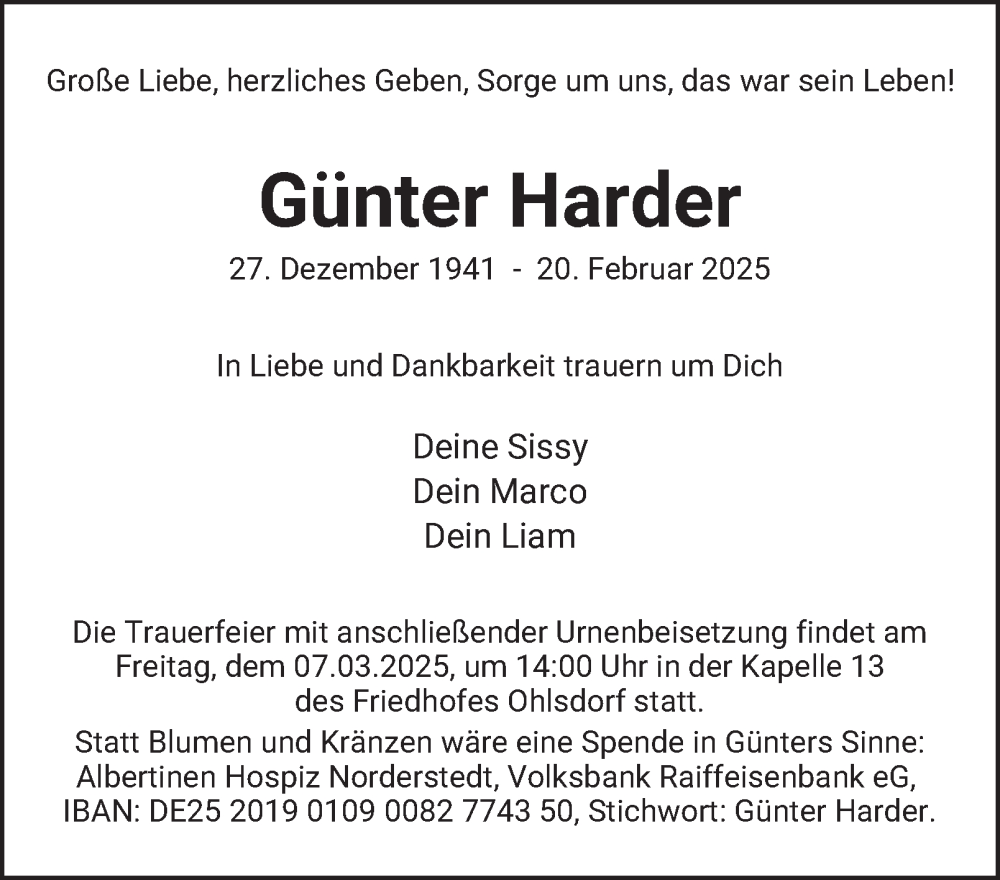 Hier finden Sie alle Traueranzeigen aus der Zeitung, die bisher für Günter Harder erschienen sind. Weitere Traueranzeigen, die in der Zeitung erscheinen, werden hier ebenfalls aufgelistet