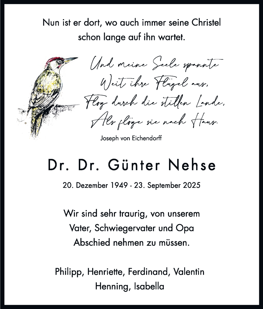 Hier finden Sie alle Traueranzeigen aus der Zeitung, die bisher für Günter Nehse erschienen sind. Weitere Traueranzeigen, die in der Zeitung erscheinen, werden hier ebenfalls aufgelistet