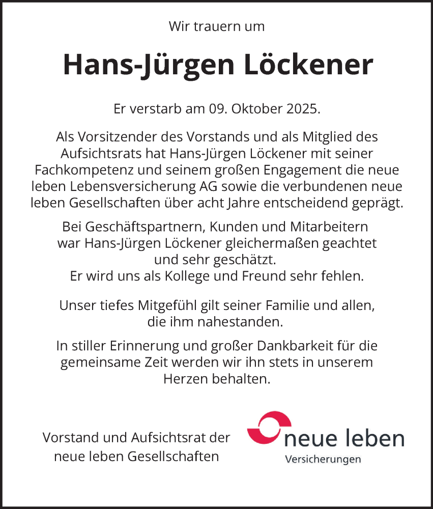 Hier finden Sie alle Traueranzeigen aus der Zeitung, die bisher für Hans-Jürgen Löckener erschienen sind. Weitere Traueranzeigen, die in der Zeitung erscheinen, werden hier ebenfalls aufgelistet