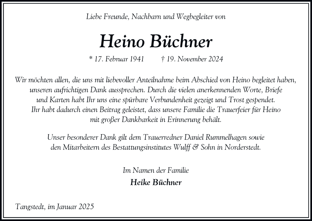 Hier finden Sie alle Traueranzeigen aus der Zeitung, die bisher für Heino Büchner erschienen sind. Weitere Traueranzeigen, die in der Zeitung erscheinen, werden hier ebenfalls aufgelistet