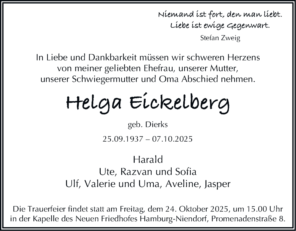 Hier finden Sie alle Traueranzeigen aus der Zeitung, die bisher für Helga Eickelberg erschienen sind. Weitere Traueranzeigen, die in der Zeitung erscheinen, werden hier ebenfalls aufgelistet