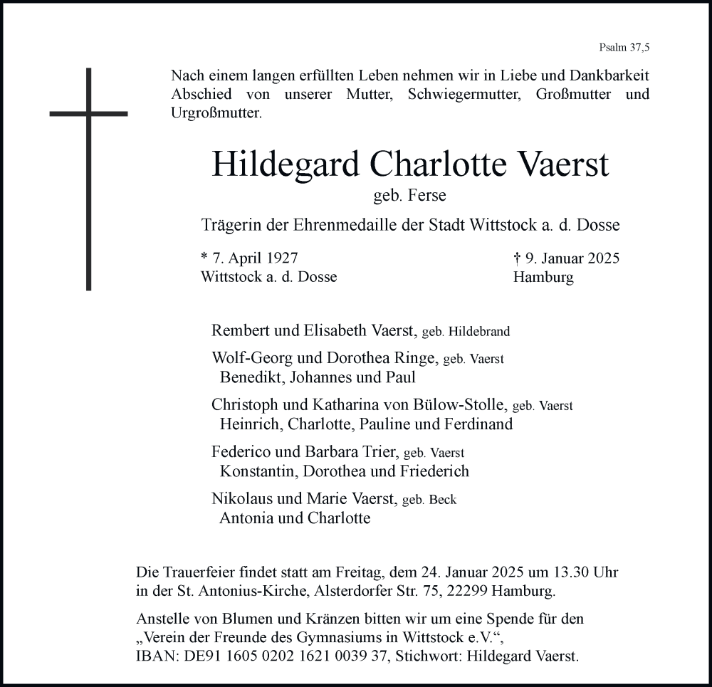Hier finden Sie alle Traueranzeigen aus der Zeitung, die bisher für Hildegard Charlotte Vaerst erschienen sind. Weitere Traueranzeigen, die in der Zeitung erscheinen, werden hier ebenfalls aufgelistet