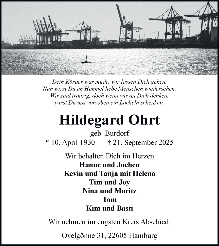 Hier finden Sie alle Traueranzeigen aus der Zeitung, die bisher für Hildegard Ohrt erschienen sind. Weitere Traueranzeigen, die in der Zeitung erscheinen, werden hier ebenfalls aufgelistet