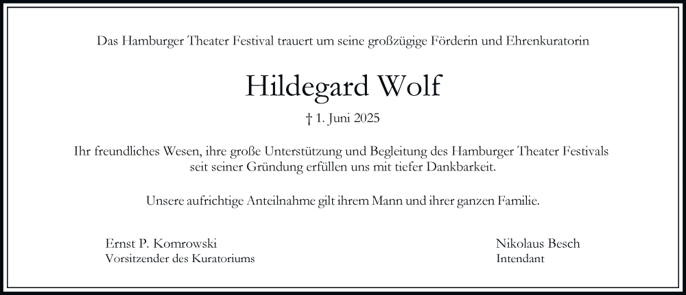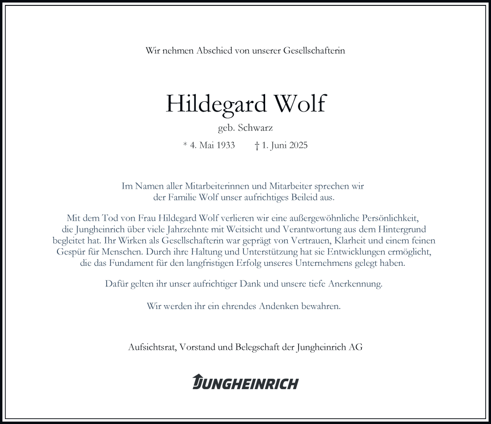 Hier finden Sie alle Traueranzeigen aus der Zeitung, die bisher für Hildegard Wolf erschienen sind. Weitere Traueranzeigen, die in der Zeitung erscheinen, werden hier ebenfalls aufgelistet