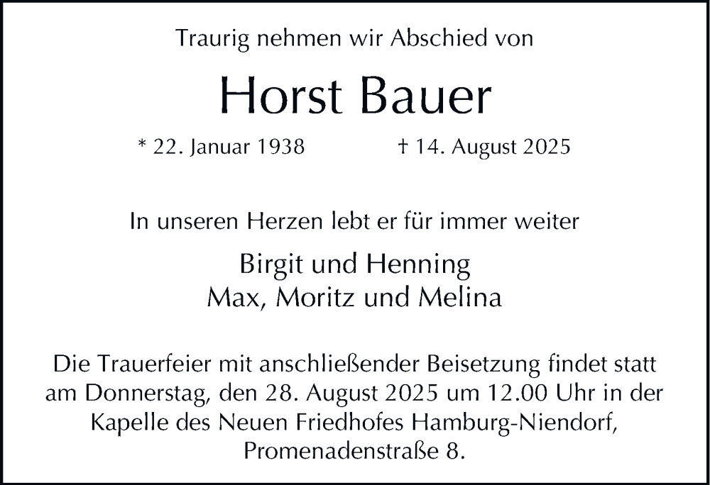 Hier finden Sie alle Traueranzeigen aus der Zeitung, die bisher für Horst Bauer erschienen sind. Weitere Traueranzeigen, die in der Zeitung erscheinen, werden hier ebenfalls aufgelistet