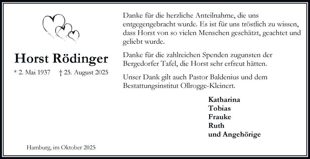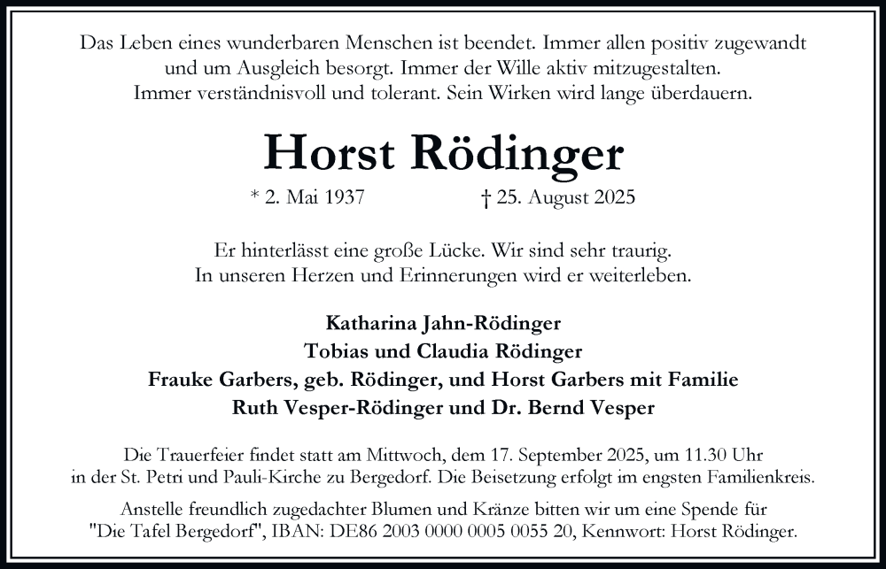 Hier finden Sie alle Traueranzeigen aus der Zeitung, die bisher für Horst Rödinger erschienen sind. Weitere Traueranzeigen, die in der Zeitung erscheinen, werden hier ebenfalls aufgelistet