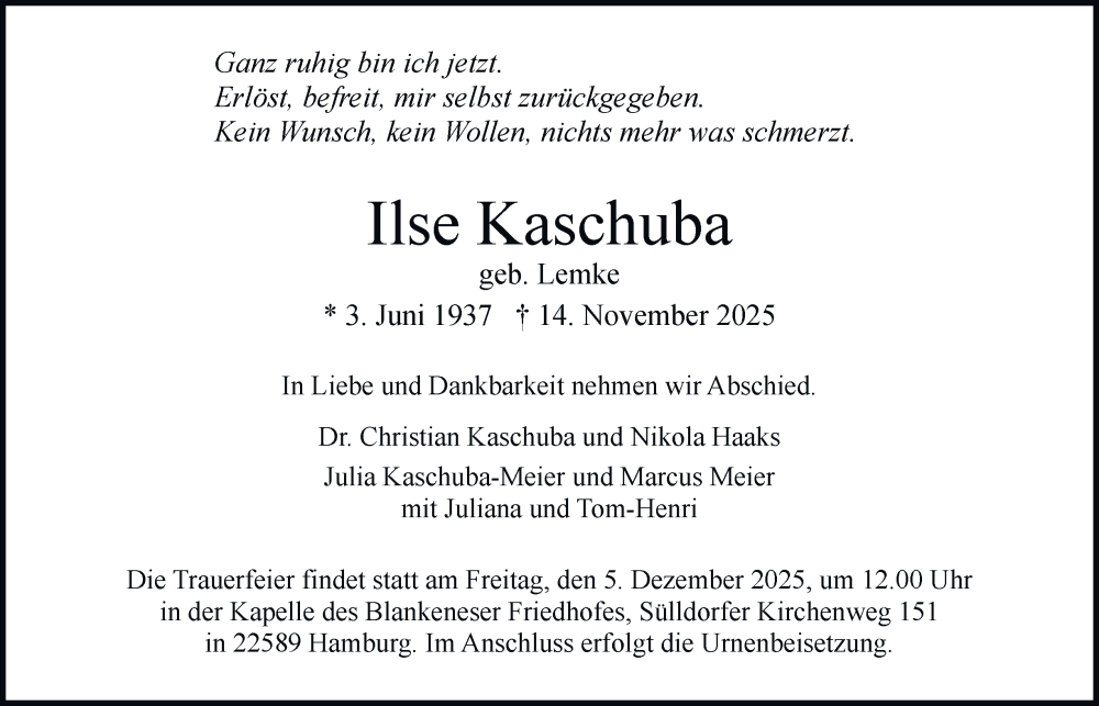 Hier finden Sie alle Traueranzeigen aus der Zeitung, die bisher für Ilse Kaschuba erschienen sind. Weitere Traueranzeigen, die in der Zeitung erscheinen, werden hier ebenfalls aufgelistet
