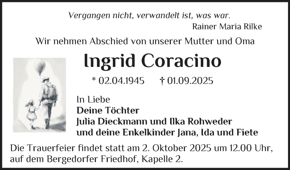 Hier finden Sie alle Traueranzeigen aus der Zeitung, die bisher für Ingrid Coracino erschienen sind. Weitere Traueranzeigen, die in der Zeitung erscheinen, werden hier ebenfalls aufgelistet