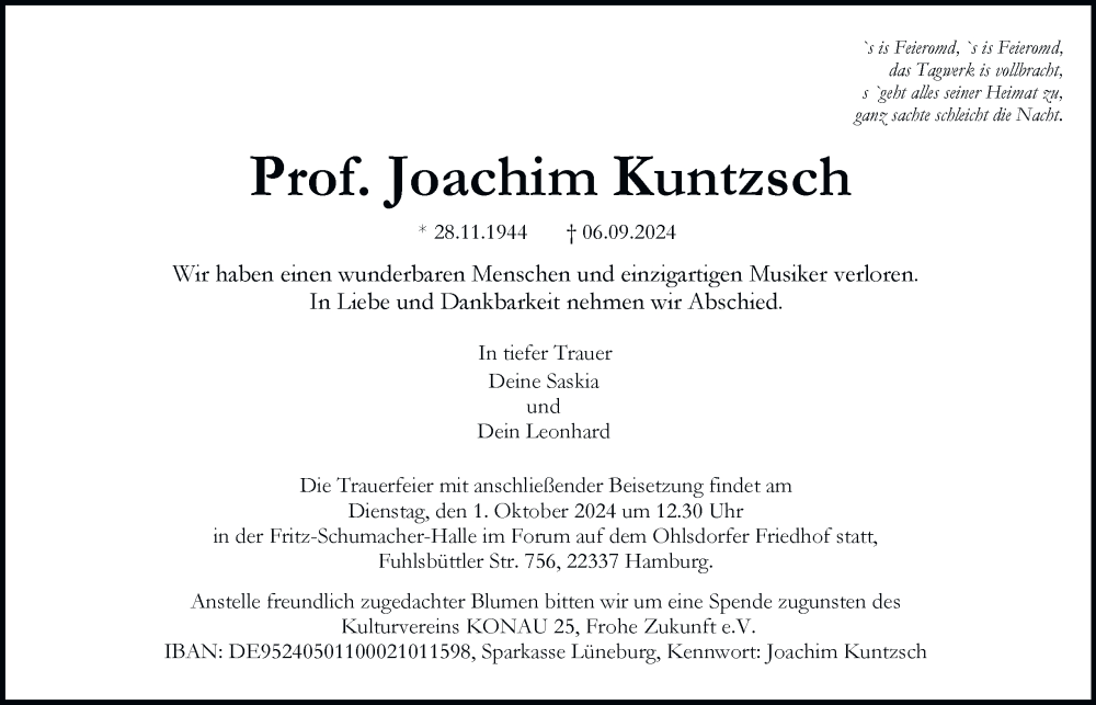 Hier finden Sie alle Traueranzeigen aus der Zeitung, die bisher für Joachim Kuntzsch erschienen sind. Weitere Traueranzeigen, die in der Zeitung erscheinen, werden hier ebenfalls aufgelistet