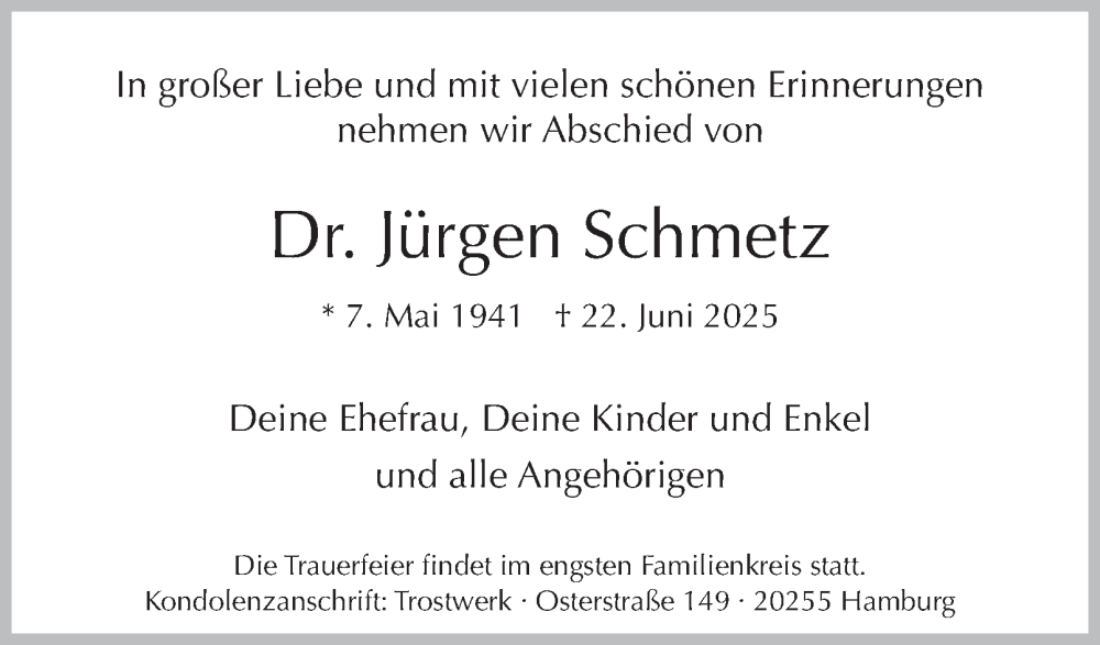 Hier finden Sie alle Traueranzeigen aus der Zeitung, die bisher für Jürgen Schmetz erschienen sind. Weitere Traueranzeigen, die in der Zeitung erscheinen, werden hier ebenfalls aufgelistet