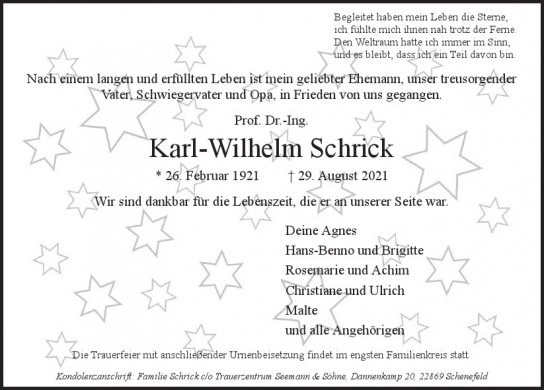 Pflanzen Sie einen Gedenkbaum für Karl-Wilhelm Schrick