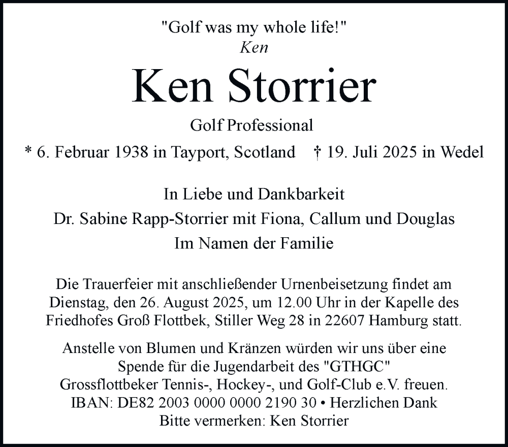 Hier finden Sie alle Traueranzeigen aus der Zeitung, die bisher für Ken Storrier erschienen sind. Weitere Traueranzeigen, die in der Zeitung erscheinen, werden hier ebenfalls aufgelistet