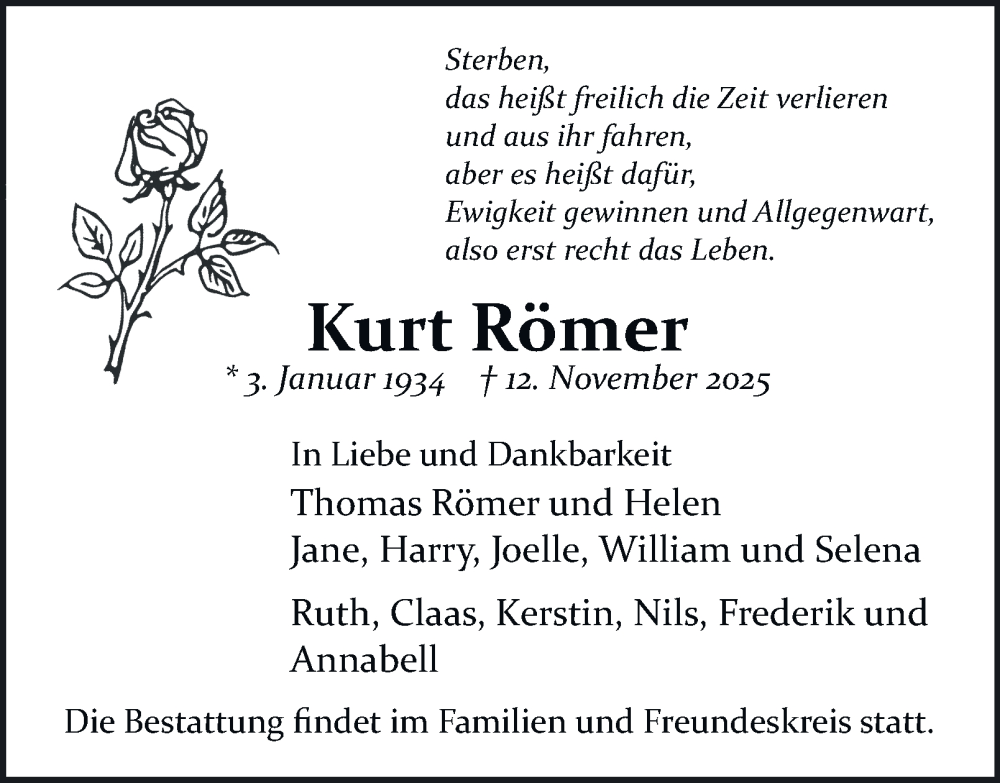 Hier finden Sie alle Traueranzeigen aus der Zeitung, die bisher für Kurt Römer erschienen sind. Weitere Traueranzeigen, die in der Zeitung erscheinen, werden hier ebenfalls aufgelistet