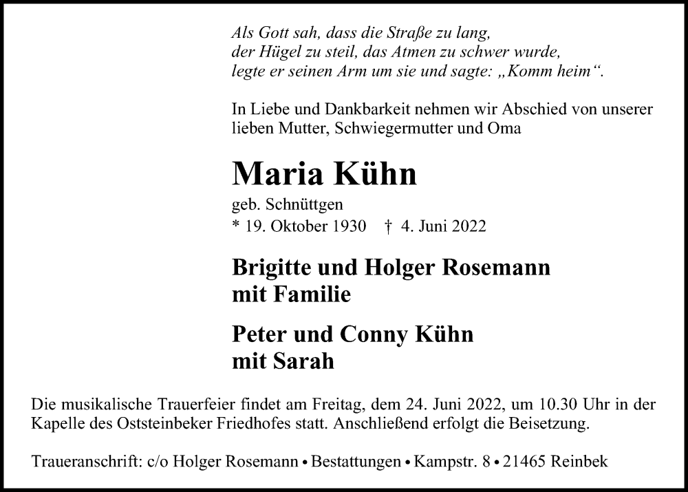 Hier finden Sie alle Traueranzeigen aus der Zeitung, die bisher für Maria Kühn erschienen sind. Weitere Traueranzeigen, die in der Zeitung erscheinen, werden hier ebenfalls aufgelistet
