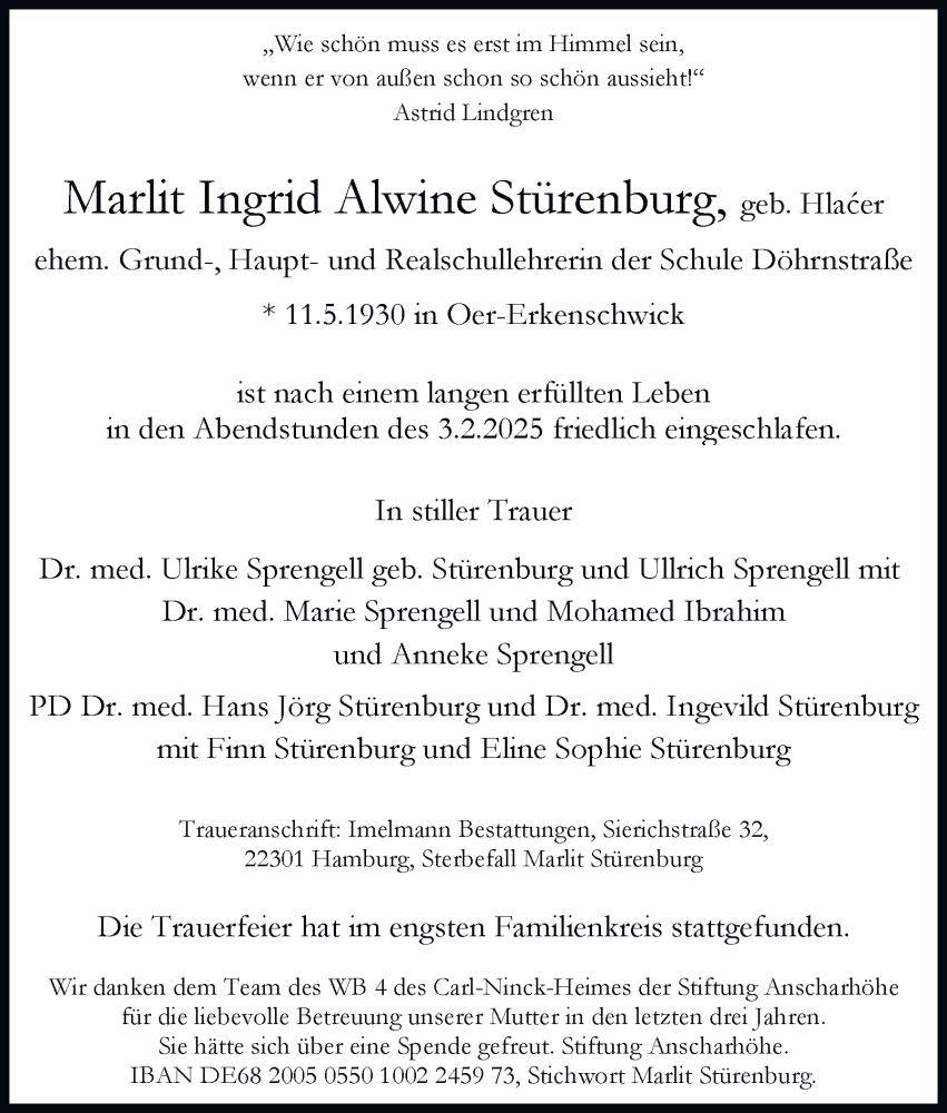 Hier finden Sie alle Traueranzeigen aus der Zeitung, die bisher für Marlit Ingrid Alwine Stürenburg erschienen sind. Weitere Traueranzeigen, die in der Zeitung erscheinen, werden hier ebenfalls aufgelistet