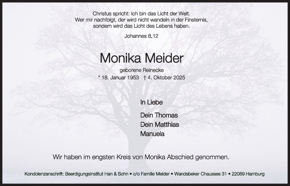 Hier finden Sie alle Traueranzeigen aus der Zeitung, die bisher für Monika Meider erschienen sind. Weitere Traueranzeigen, die in der Zeitung erscheinen, werden hier ebenfalls aufgelistet