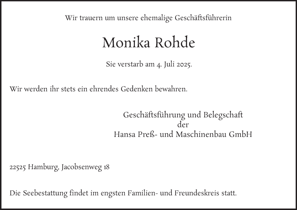 Hier finden Sie alle Traueranzeigen aus der Zeitung, die bisher für Monika Rohde erschienen sind. Weitere Traueranzeigen, die in der Zeitung erscheinen, werden hier ebenfalls aufgelistet
