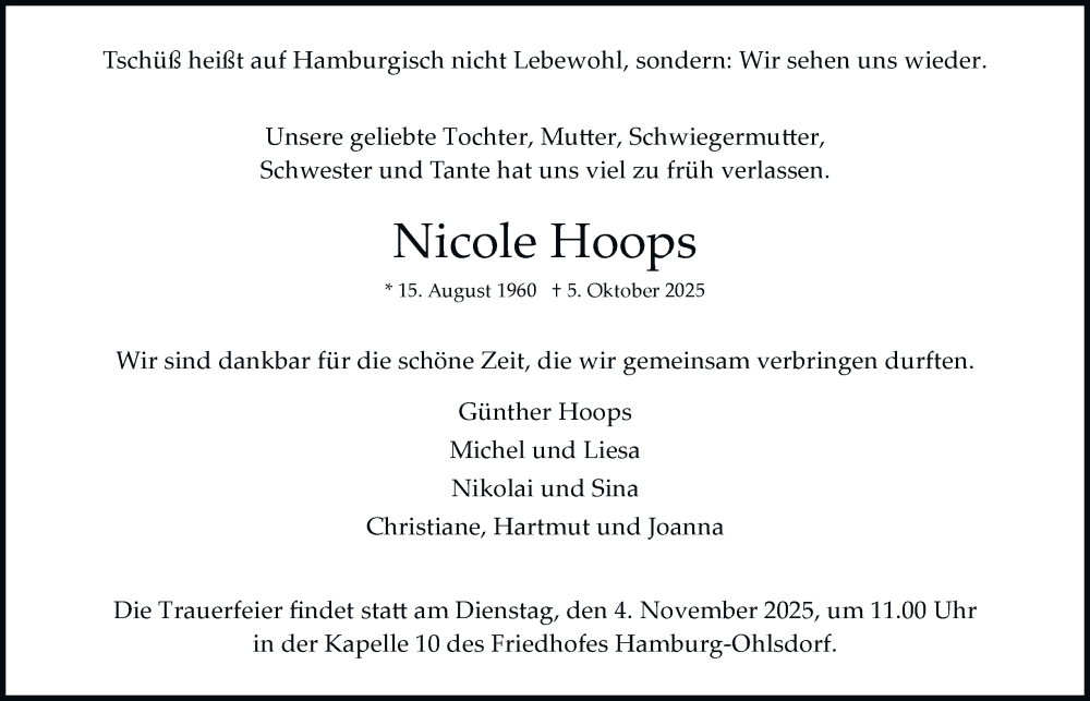 Hier finden Sie alle Traueranzeigen aus der Zeitung, die bisher für Nicole Hoops erschienen sind. Weitere Traueranzeigen, die in der Zeitung erscheinen, werden hier ebenfalls aufgelistet