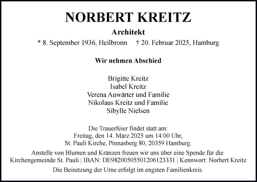 Hier finden Sie alle Traueranzeigen aus der Zeitung, die bisher für Norbert Kreitz erschienen sind. Weitere Traueranzeigen, die in der Zeitung erscheinen, werden hier ebenfalls aufgelistet
