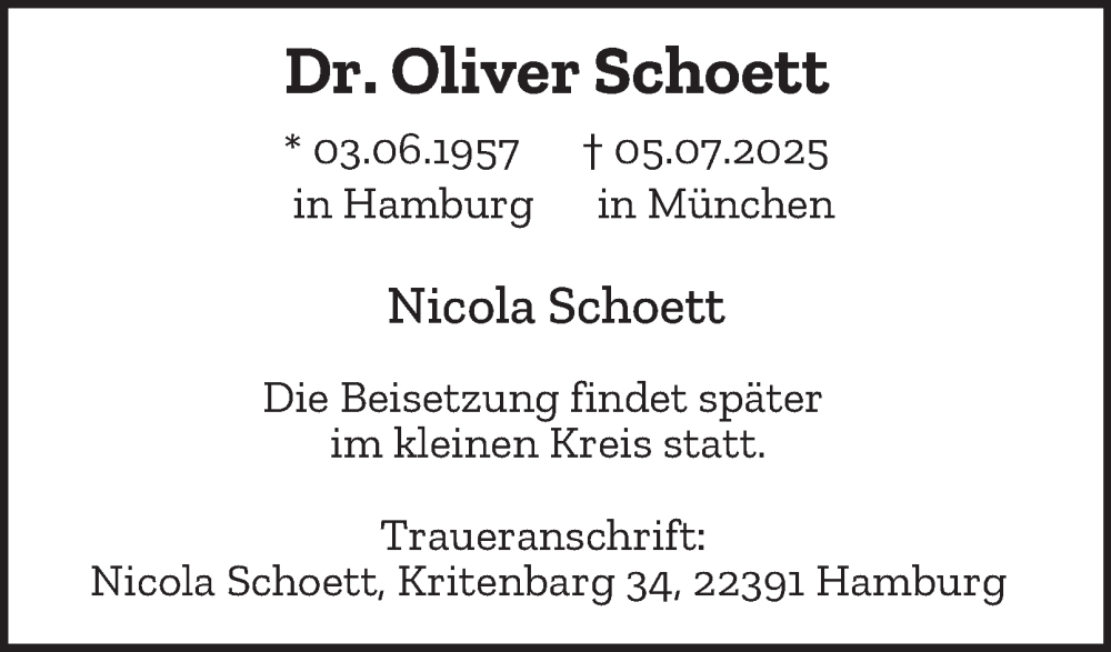 Hier finden Sie alle Traueranzeigen aus der Zeitung, die bisher für Oliver Schoett erschienen sind. Weitere Traueranzeigen, die in der Zeitung erscheinen, werden hier ebenfalls aufgelistet