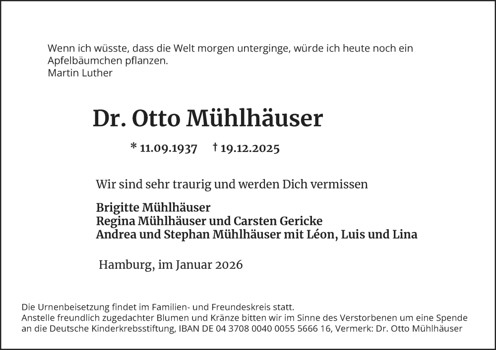 Hier finden Sie alle Traueranzeigen aus der Zeitung, die bisher für Otto Mühlhäuser erschienen sind. Weitere Traueranzeigen, die in der Zeitung erscheinen, werden hier ebenfalls aufgelistet