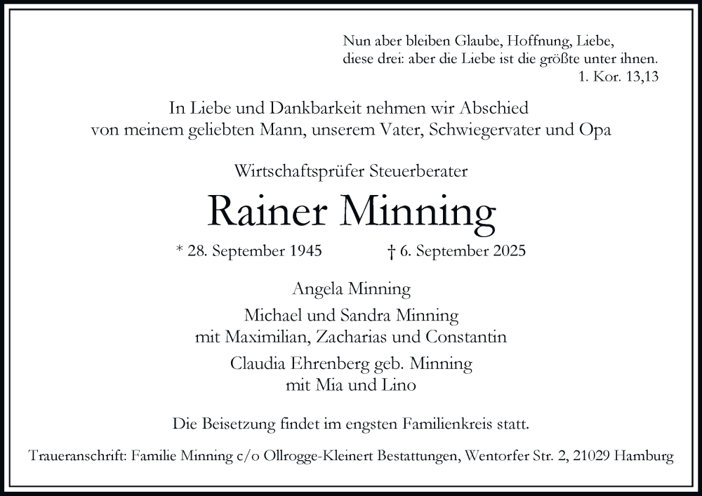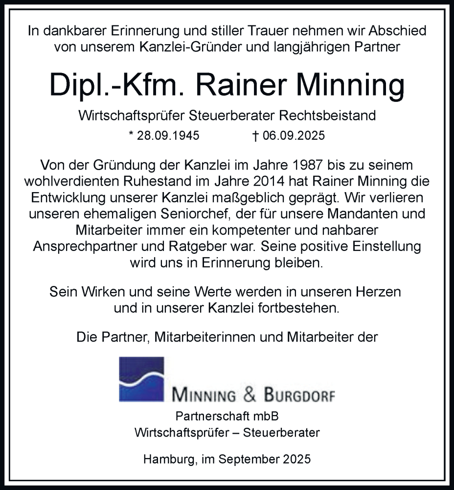Hier finden Sie alle Traueranzeigen aus der Zeitung, die bisher für Rainer Minning erschienen sind. Weitere Traueranzeigen, die in der Zeitung erscheinen, werden hier ebenfalls aufgelistet
