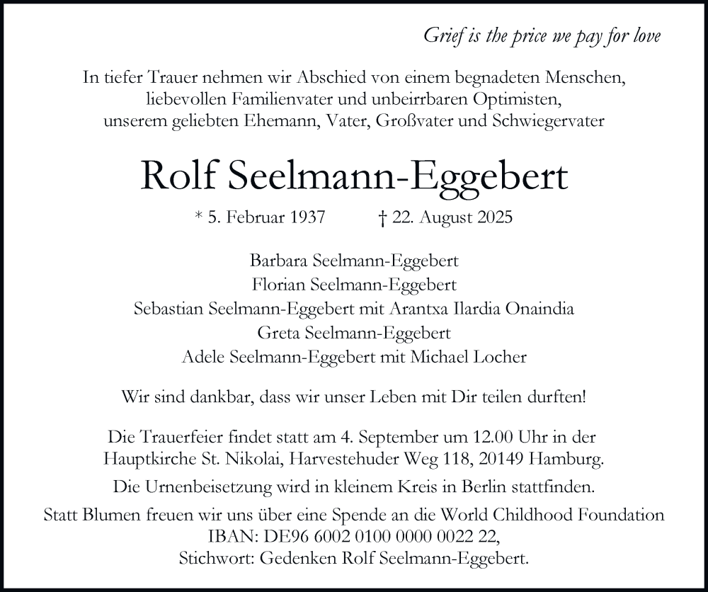 Hier finden Sie alle Traueranzeigen aus der Zeitung, die bisher für Rolf Seelmann-Eggebert erschienen sind. Weitere Traueranzeigen, die in der Zeitung erscheinen, werden hier ebenfalls aufgelistet