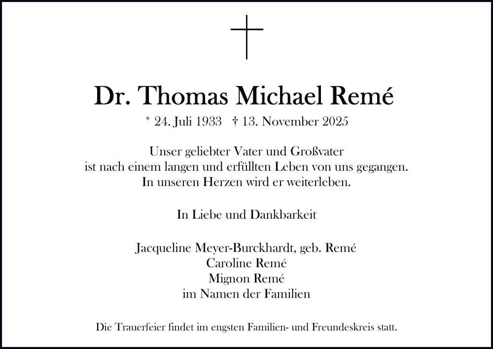 Hier finden Sie alle Traueranzeigen aus der Zeitung, die bisher für Thomas Michael Remé erschienen sind. Weitere Traueranzeigen, die in der Zeitung erscheinen, werden hier ebenfalls aufgelistet