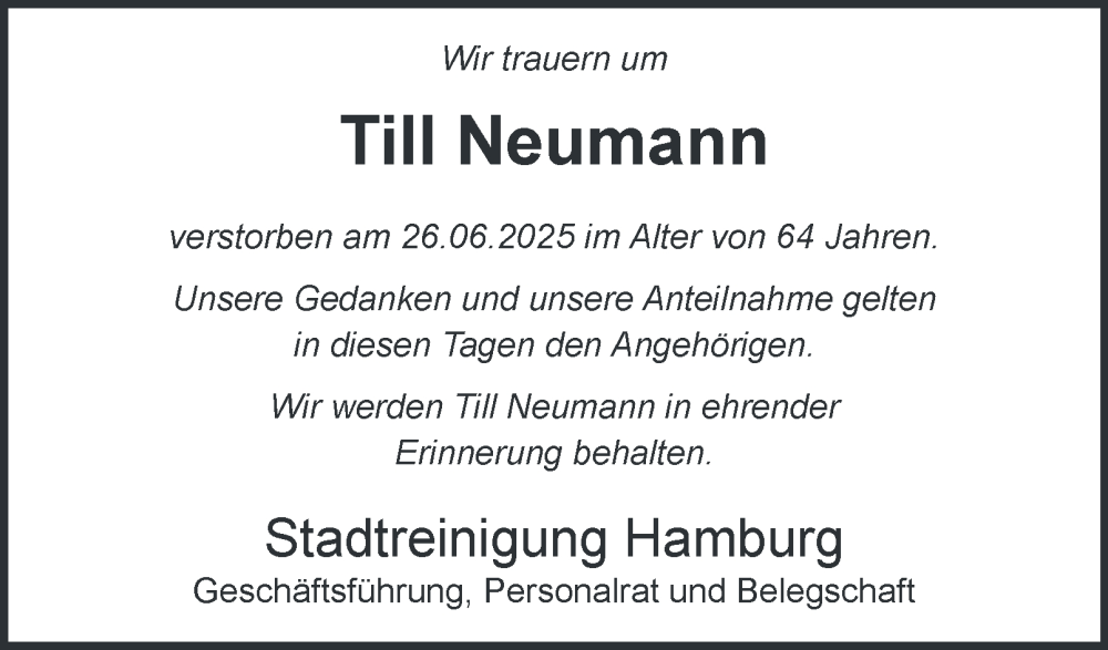 Hier finden Sie alle Traueranzeigen aus der Zeitung, die bisher für Till Neumann erschienen sind. Weitere Traueranzeigen, die in der Zeitung erscheinen, werden hier ebenfalls aufgelistet