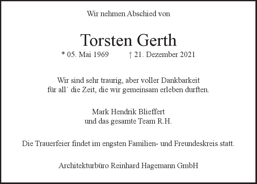 Hier finden Sie alle Traueranzeigen aus der Zeitung, die bisher für Torsten Gerth erschienen sind. Weitere Traueranzeigen, die in der Zeitung erscheinen, werden hier ebenfalls aufgelistet