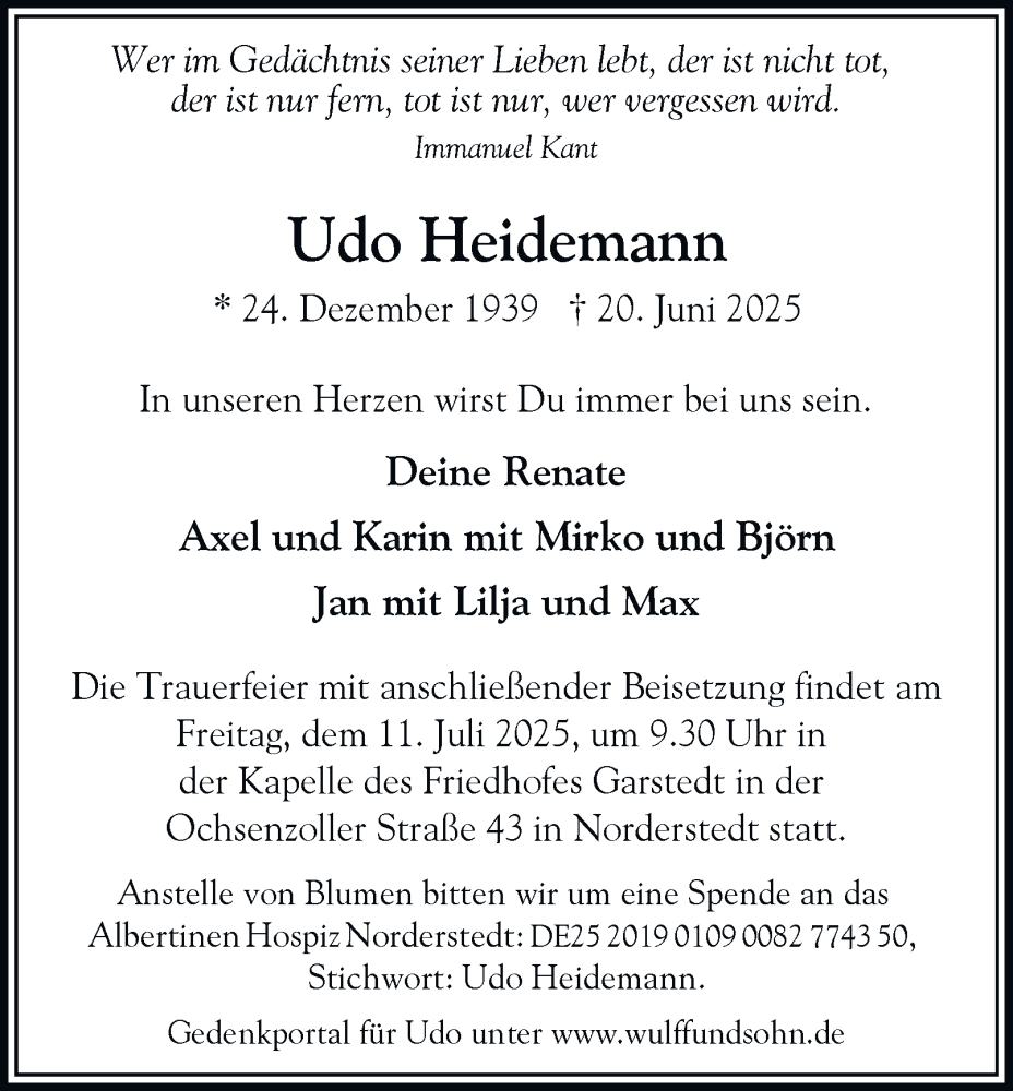 Hier finden Sie alle Traueranzeigen aus der Zeitung, die bisher für Udo Heidemann erschienen sind. Weitere Traueranzeigen, die in der Zeitung erscheinen, werden hier ebenfalls aufgelistet