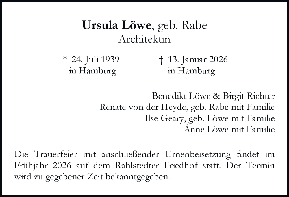 Hier finden Sie alle Traueranzeigen aus der Zeitung, die bisher für Ursula Löwe erschienen sind. Weitere Traueranzeigen, die in der Zeitung erscheinen, werden hier ebenfalls aufgelistet