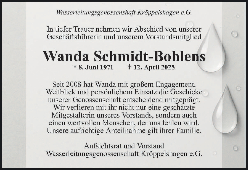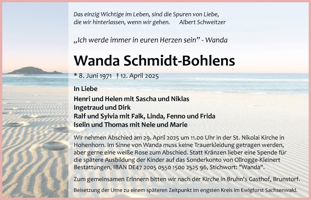 Hier finden Sie alle Traueranzeigen aus der Zeitung, die bisher für Wanda Schmidt-Bohlens erschienen sind. Weitere Traueranzeigen, die in der Zeitung erscheinen, werden hier ebenfalls aufgelistet